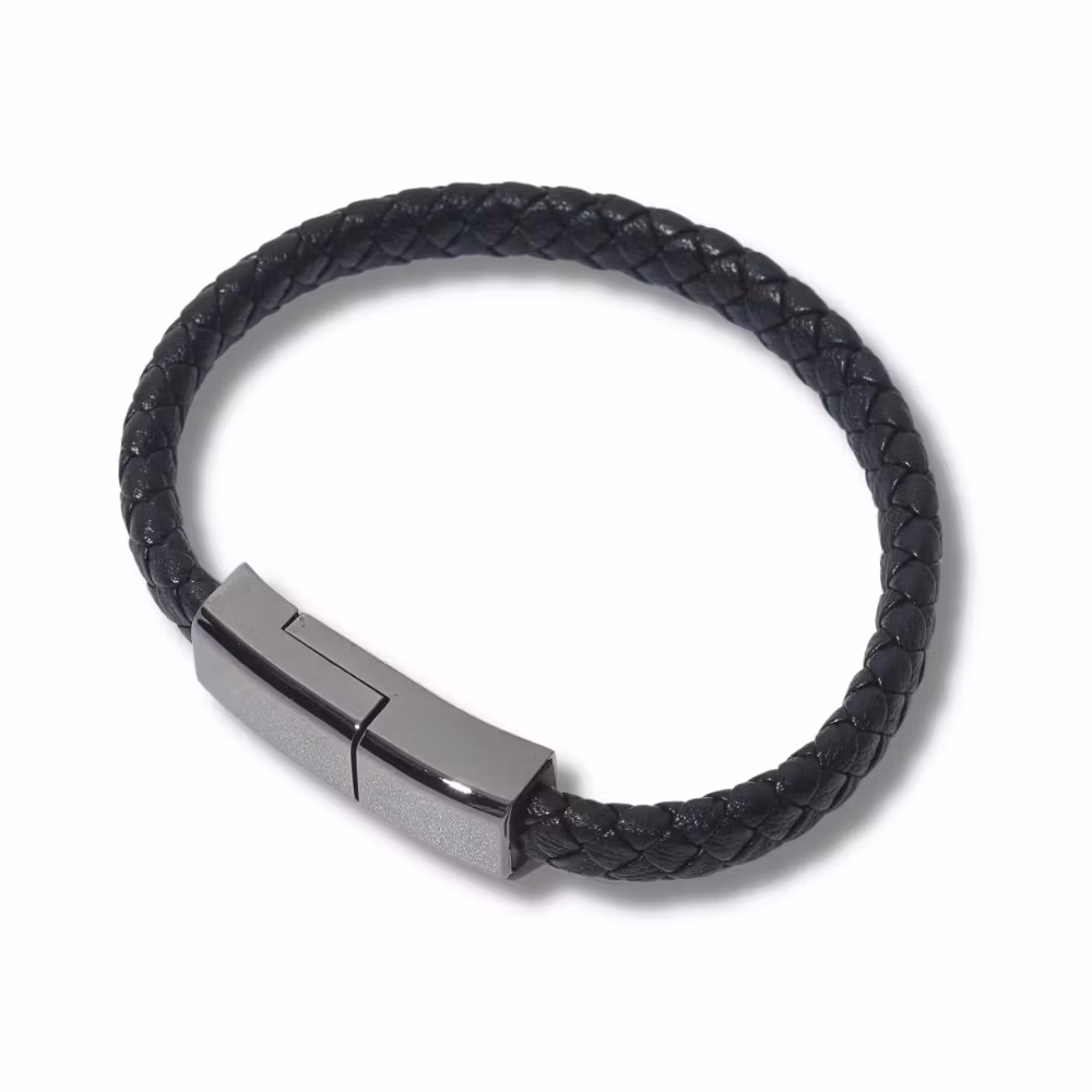 Laddkabel Armband USB 2.0 Type-C to USB. Aluminiumlegering, PU-läderledare, Ren kopparlängd. total längd 20 cm. Dessa laddare är designade för att bäras på handleden. Ett bärbart ladd-armband är en bekväm och praktisk lösning för att hålla din mobiltelefon laddad när du är på språng.